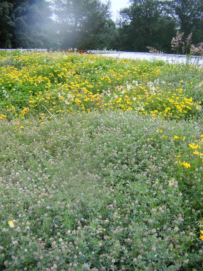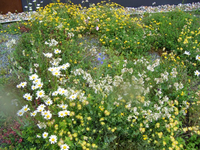 The space needed to be ready for social events in the run up to the Olympic Games, the use of plug plants and a supporting seed mix resulted in a lush green roof that was so attractive to bees it could be heard buzzing over the sounds of the many sports teams playing on the marshes.